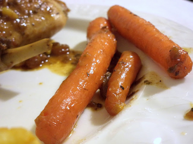 potem kazali rozpuścić łyżkę cukru w trzech łychach octu -użyłem białego winnego, wrzucić tam uprzednio namoczone rodzynki i pinoli i wszystko razem dać królikowi.;)