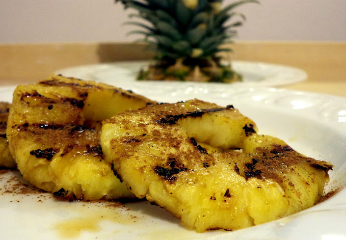 ananasa obrałem, pokroiłem w plastry i rzuciłem na rozgrzana patelnię grillową...