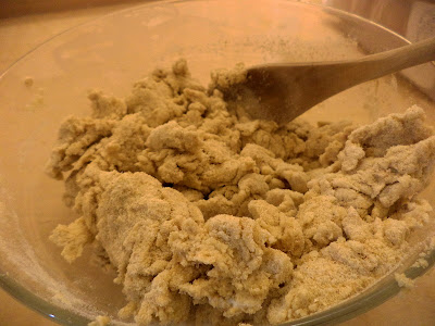 w ciepłej wodzie rozpuściłem około łyżki soli wlałem do naczynia z ciastem, dodałem tym razem białej mąki i wszystko razem wymiąchałem, formując kulę... znaczy prawie kulę...:D